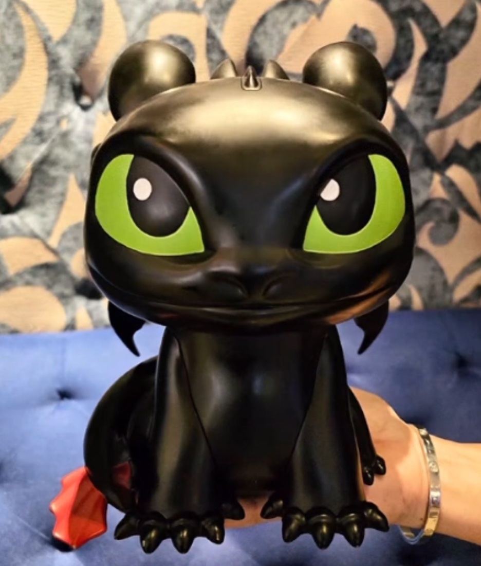 Figura completa de Chimuelo en 3D con sus ojos verdes ic贸nicos, alas detalladas y dise帽o s贸lido.