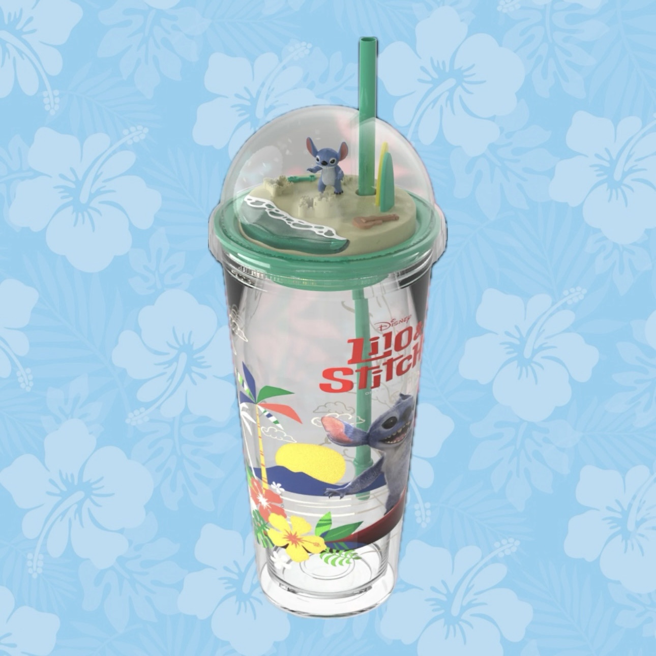 • Vaso Stitch con domo y figura 3D – Doble capa, decoración tropical y una mini figura adentro.